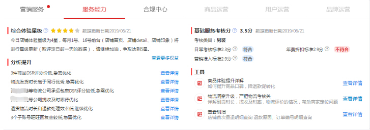 对目前考核商家经营的两大体系:综合体验星级和基础服务考核分,给予诊断方案,及时发现经营问题,不断优化提升综合运营能力,进而提升消费者体验,形成良好的运营闭环。
