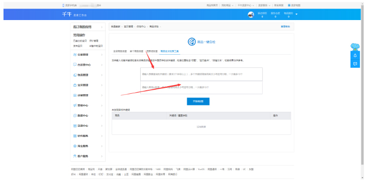很多卖家在详情页的文案中有是也会存在违规词,以及极限词,那么这个时候,我们就可以直接用【商品全文检索】工具,来检查自己的详情页中是不是存在我们想要查看的违规词,只要把想查看的违规词以及产品ID输入上下两个搜索栏以后,就可以直接排查了。