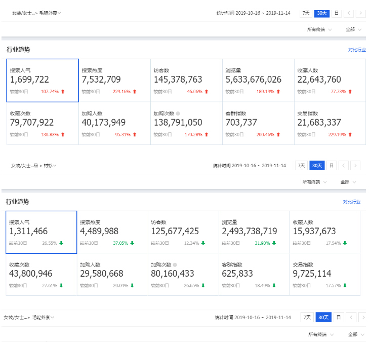 除了标品外,很多类目都会受季节因素的影响,换季或者某一时间段,大盘都会有所变动,大盘的变动也会影响店铺的流量。