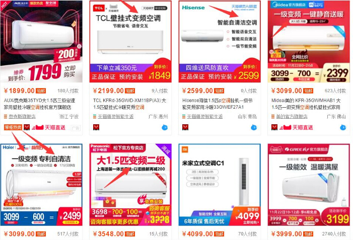 你可以看到上面主要这几个点,变频和自清洁,这基本也都对应了不同的人群特点,其实这几年随着人们的生活水平提高,渐渐都接受了空调就是个耗电的东西,你再怎么指望他省电也还是一样耗电,再加上慢割肉不疼,每天多一点也无所谓了,所以感觉只要是个变频的就可以,几级能效也不在乎了,反而对空调其他方面更有吸引了,像自清洁,原来时候可能直到空调坏也都不会清洁一次,现在随着了解的深入这点就变得更加重要了,清洁的好,使用寿命延长,用起来也更加的舒服,所以这就对应这部分注重服务的人群,而至于一级能效变频这个依然也能抓住一部分格外理性的人,每天省点电费,即使贵一点也无所谓,时间长了成本就省回来了,所以不同卖点对应不同人群,这个你要去做好研究,看你想主打哪部分的人群。