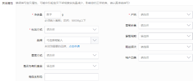 属性是对宝贝的精细定位,不同类目的属性填写内容当然也不一样,大家要记得的就是带*号的内容是一定要填写正确的,且不可更改的,而其他未带*号的内容,在发布宝贝时如果不清楚可以不填写,但是后期最好能补上。